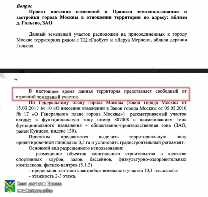 Проект внесения изменений в ПЗЗ г. Москвы вблизи д. Гольево уч. 145192041 (Красногорс, ЗАО)