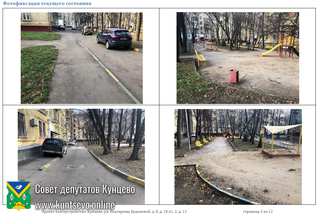 Проект благоустройства: Екатерины Будановой, д. 8, д. 10 к.1, 2, д. 12 Документ PDF: Читать онлайн | Скачать | 2 Мб Екатерина Буданова — 21.01.2020 1741 Алексеев Алексей Комментарии RSS Написать комментарий Нет комментариев. Ваш будет первым! Ваше имя: E-mail для ответов: Загрузка...