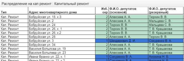 Депутаты Совета депутатов муниципального округа Кунцево, уполномоченные для участия в работе комиссий, осуществляющих открытие работ и приёмку выполненных работ по капитальному ремонту инженерных систем и конструктивных элементов (в том числе разработка проектно-сметной документации)