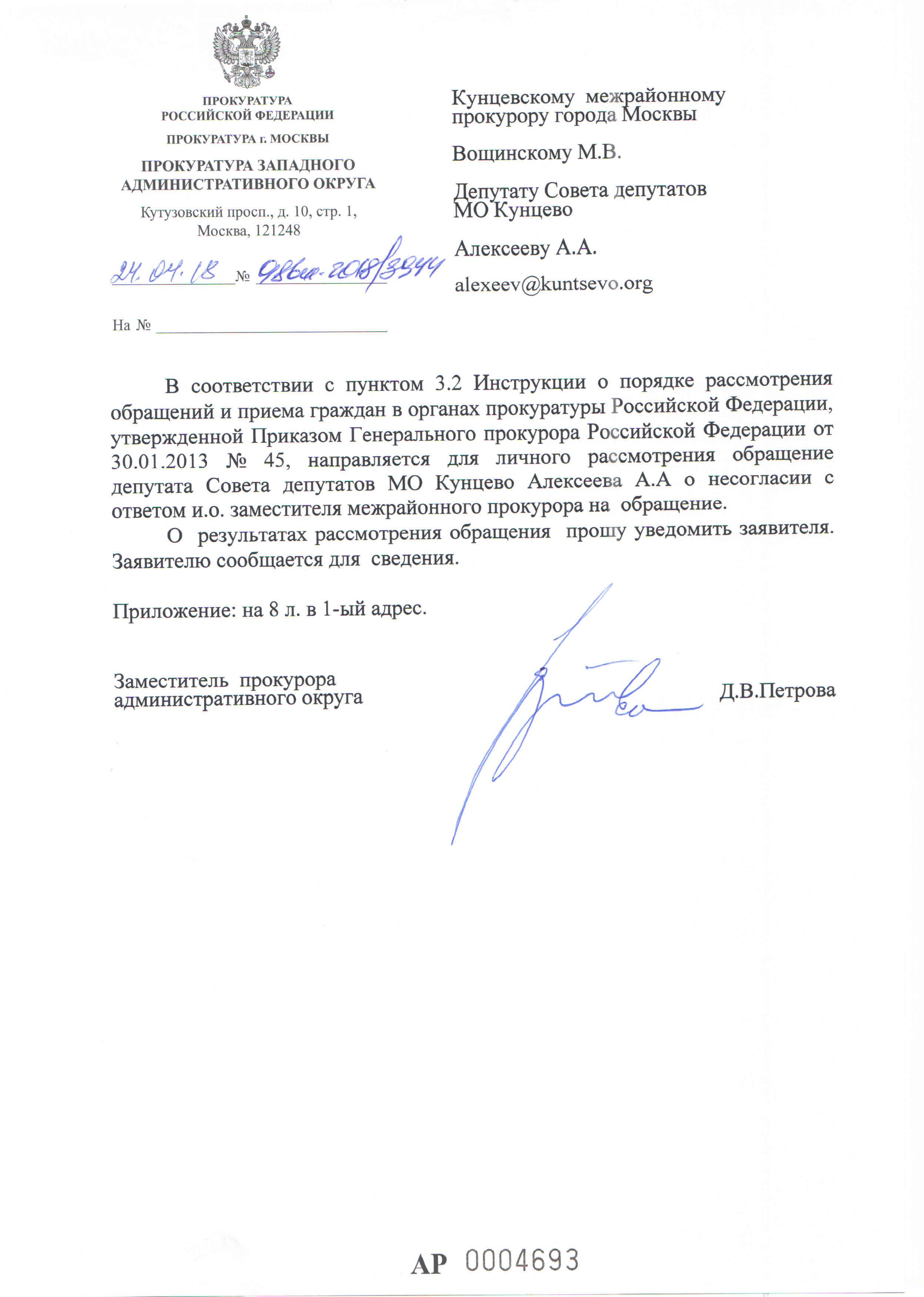 2018-04-18 Об обжаловании ответа Кунцевской прокуратуры по Козино Реквизиты обращения Рег. номер: МОК-4/1-60 Ведомство \ организация: Прокуратура ЗАО Дата отправки: 18.04.2018 Статус ответа: Ожидание ответа Обращение: 2018-04-18-ob-osparivanii-otveta-kuncevskoi-prokuratury-po-kozino.pdf | Скачать | 2 Мб Приложение: ИконкаНазвание файлаРазмерСкачать 2018-04-26 Пересылка в Кунцевскую(416.5 КБ)Скачать прокуратура кунцево, оспаривание ответа 08.05.2018 16:35 1161 Алексеев Алексей Комментарии RSS Написать комментарий Нет комментариев. Ваш будет первым! Ваше имя: E-mail для ответов: Загрузка...