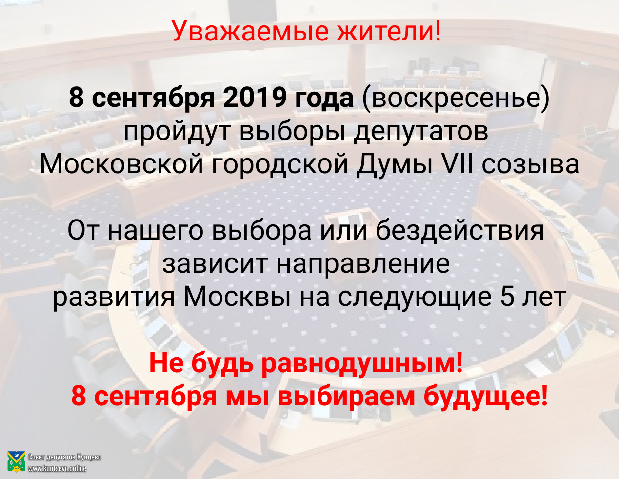 8 сентября 2019 года (воскресенье) пройдут выборы депутатов Московской городской Думы VII созыва!