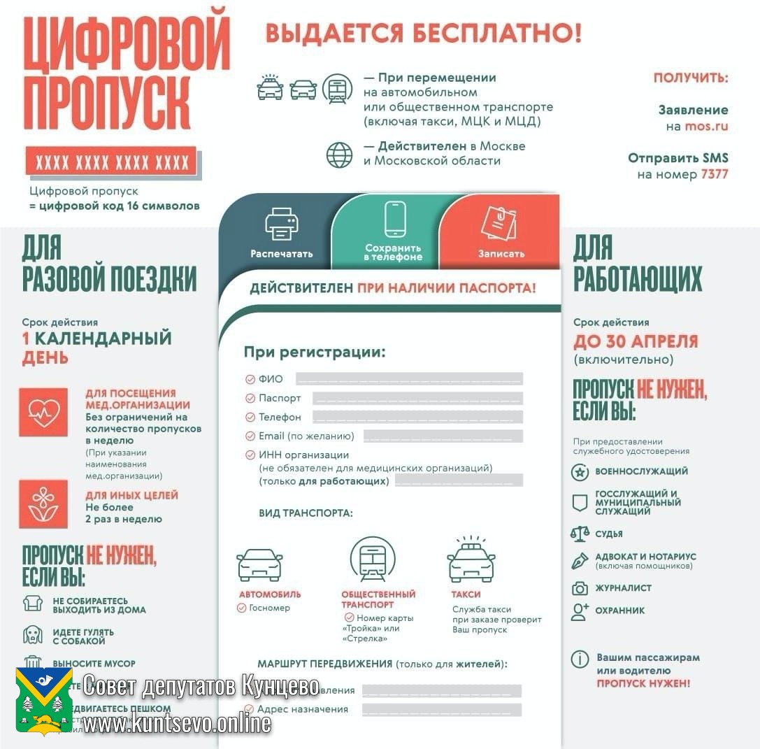 Начать оформление цифровых пропусков можно будет с понедельника 13 апреля 2020 года.