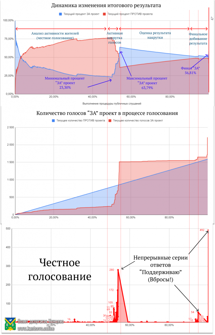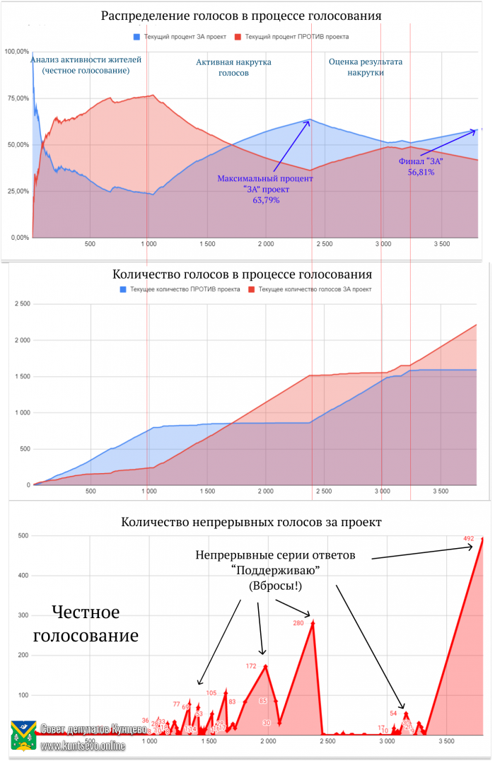 - Активность жителей сделала голосование по данному проекту незаурядной задачей.. Жители Кунцево МОЛОДЦЫ! Именно благодаря активности жителей стал столь очевидным подлог результатов голосования.