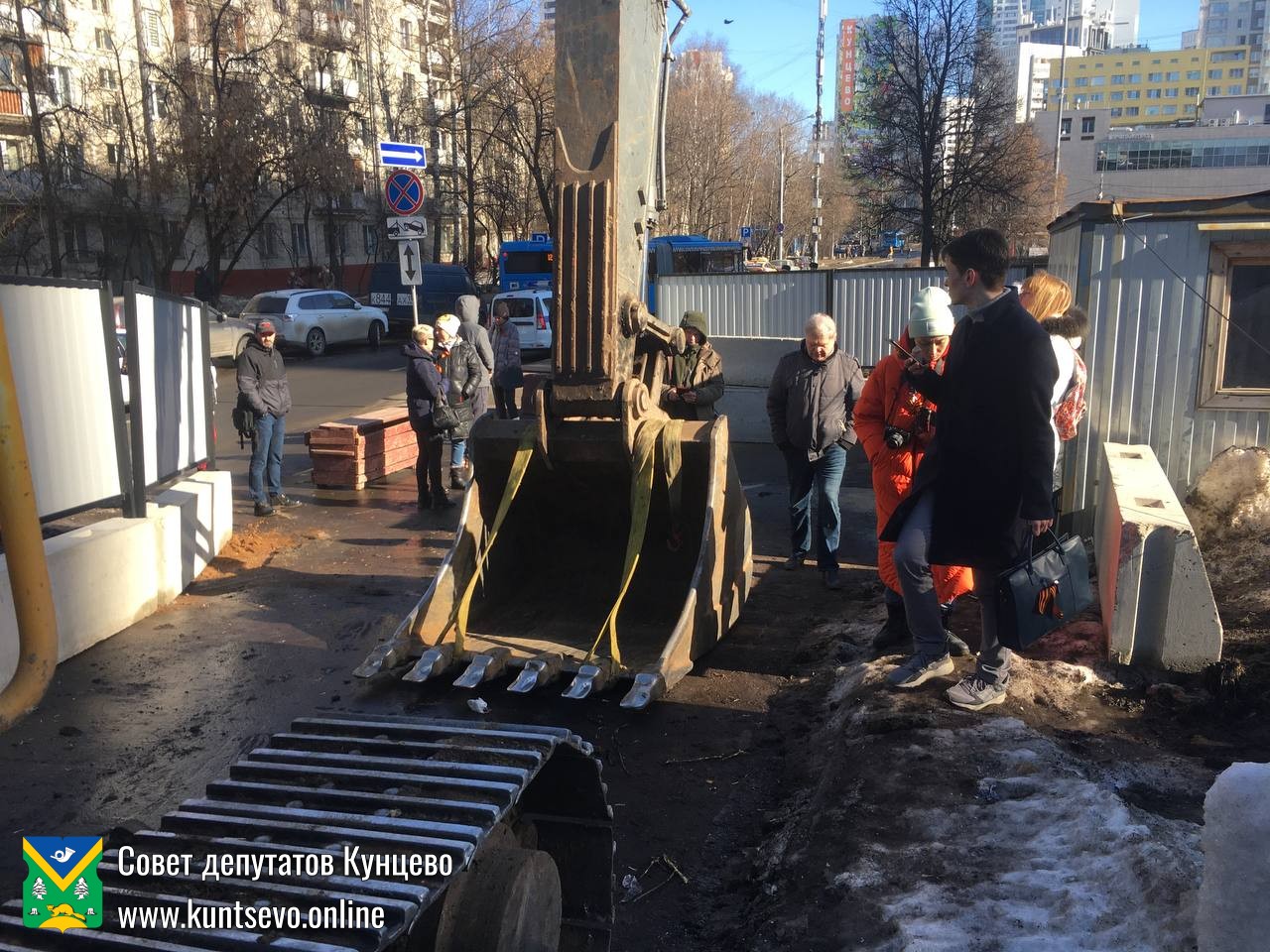 В результате инициативная группа вместе с депутатами организовала общественную инспекцию и сегодня пришла проверять стройплощадку. Они обнаружили, что огородили большую площадь, чем положено по документам, спецтехника прибыла без наличия на руках ордера на снос, да еще и без госномеров, а также что строители уже успели повредить деревья на огороженной территории.