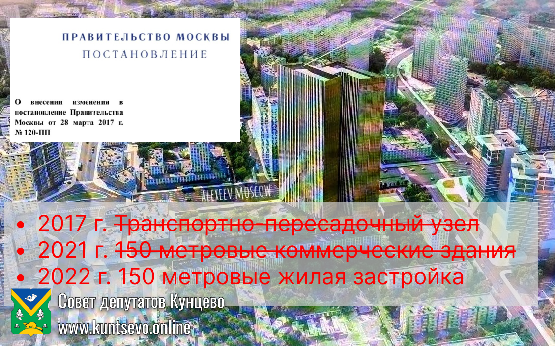 Таким образом, изъятие последней площади в Кунцево у жителей, через мифические планы строительства транспортно-пересадочного узла в вульгарную точечную жилую застройку будет завершено.