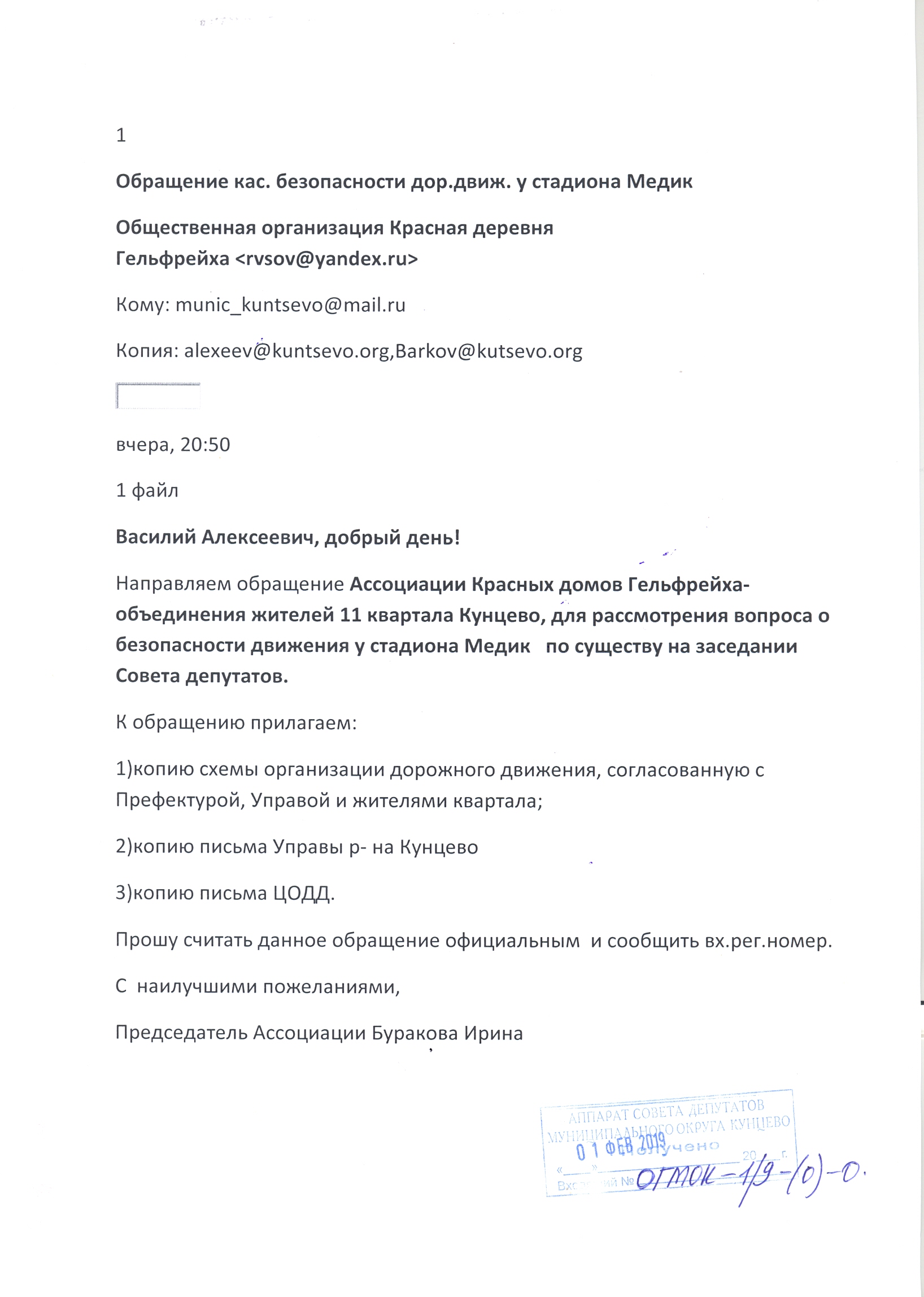 - Направить настоящее решение в Комиссию по безопасности дорожного движения в ЗАО г. Москвы с приложением обращения жителей.