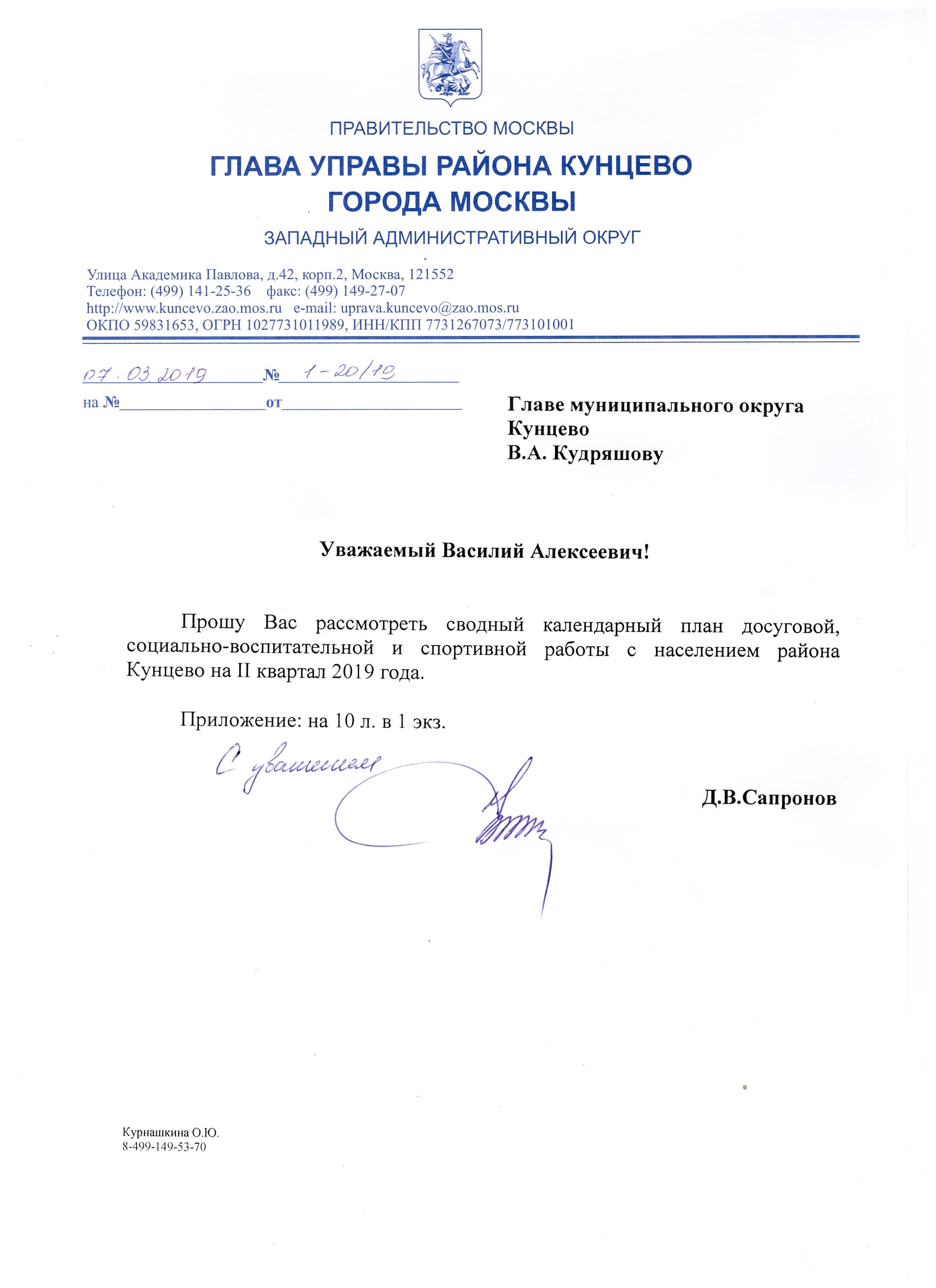 - Согласовать сводный районный календарный план по досуговой, социально-воспитательной, физкультурно-оздоровительной и спортивной работе с населением по месту жительства на второй квартал 2019 года (приложение).
