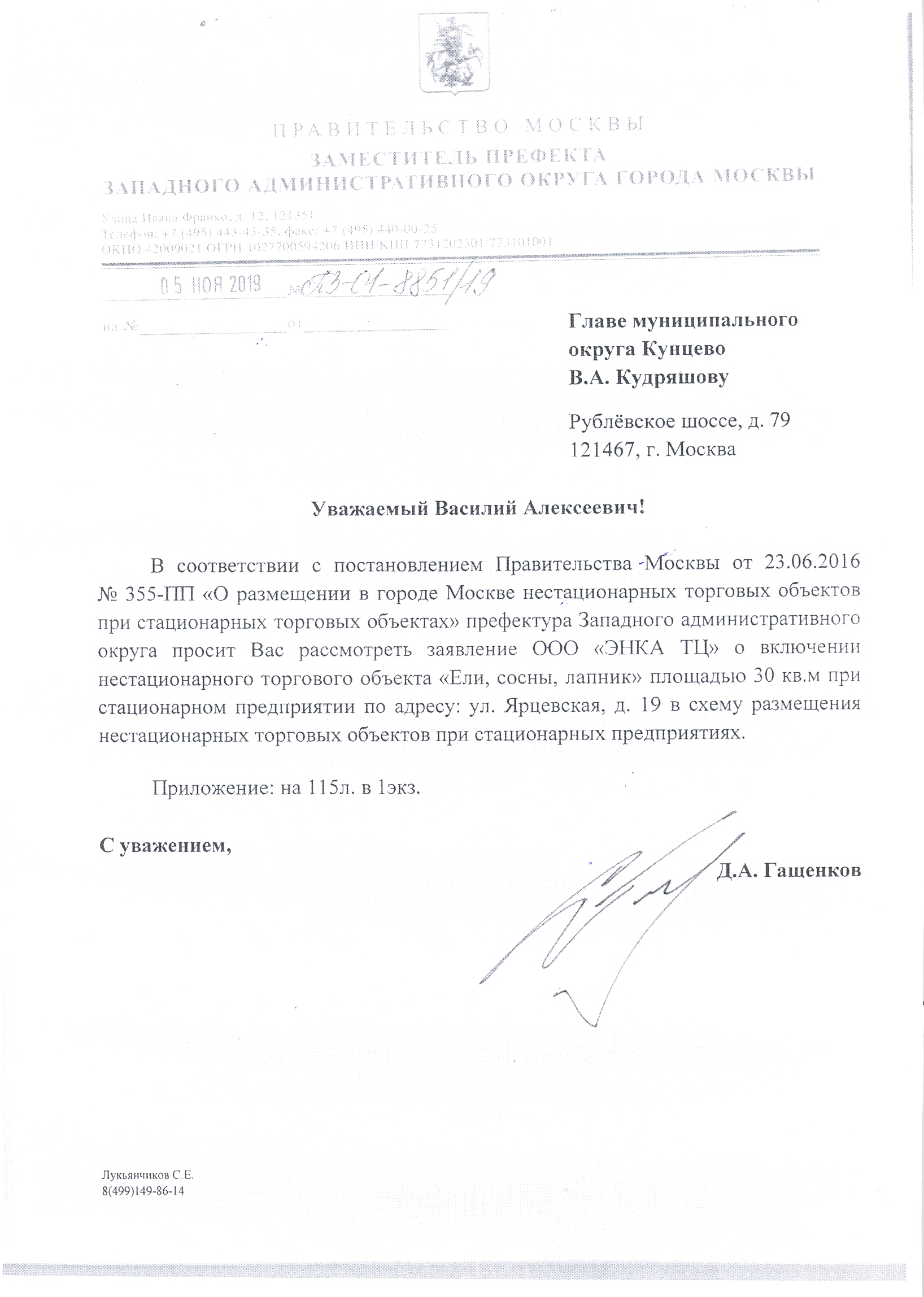(Обращение префектуры ЗАО города Москвы от 25.10.2019 №ПЗ-01-8681/19).